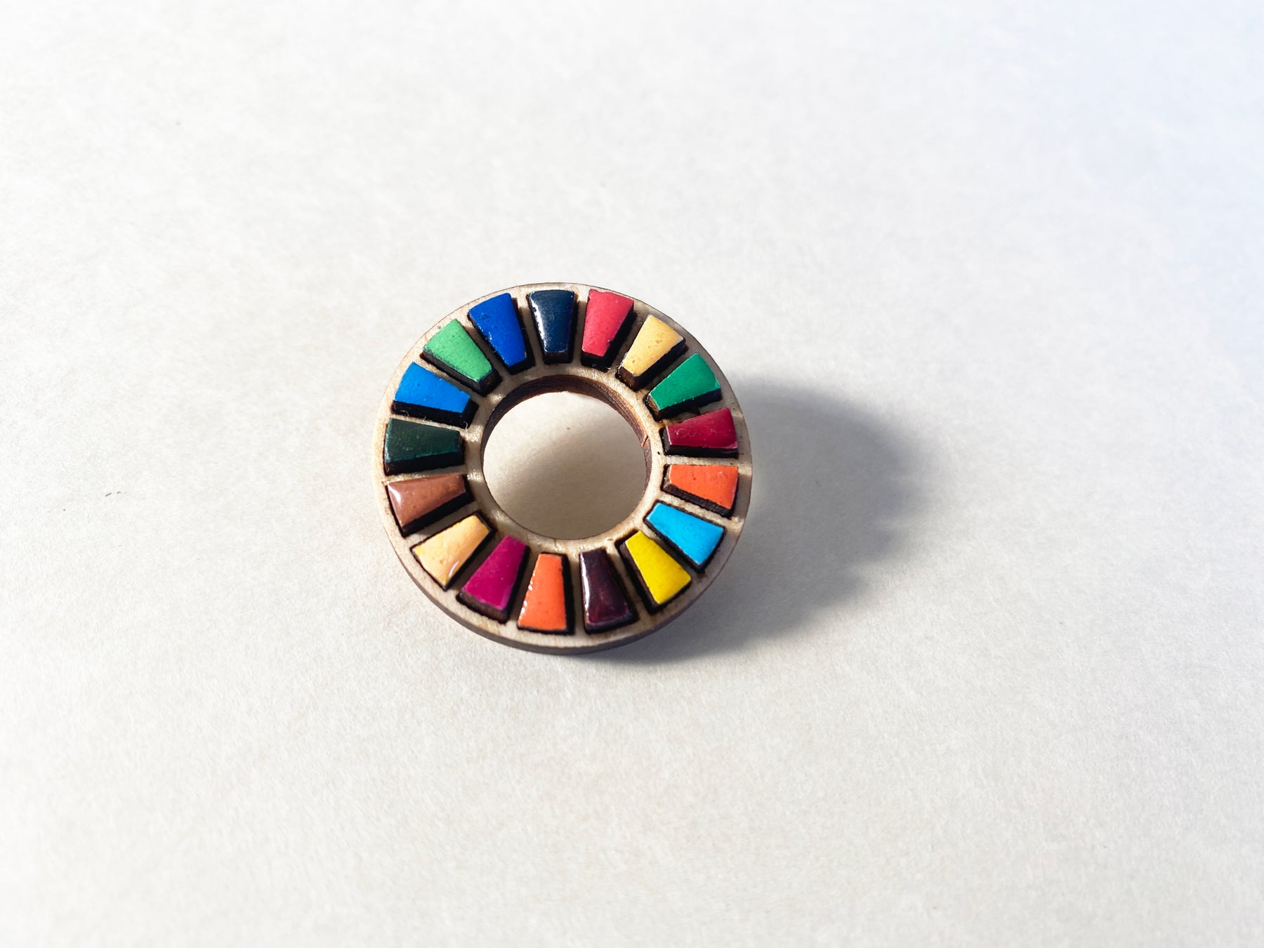 愛知県の間伐材等の資材(木材、インク、エポキシ樹脂、接着剤、筆、ピン)を使用し名古屋市立守山養護学校の生徒・教員・一般社団法人 日本福祉協議機構が共同制作しました。