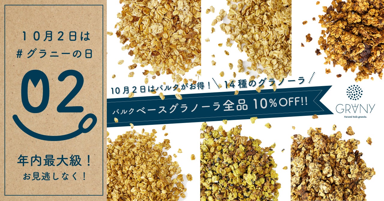 「オーツ麦の日」とも知られる10月2日にちなんで、よりグラノーラをお楽しみいただきやすいように、バルク販売のベースグラノーラをお得にご提供いたします。
