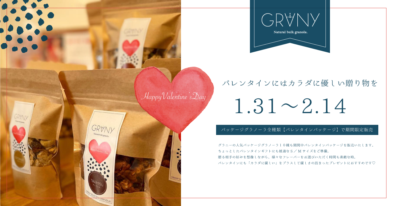 グラニーの人気パッケージグラノーラ10種も期間中【バレンタインパッケージ】を販売いたします。