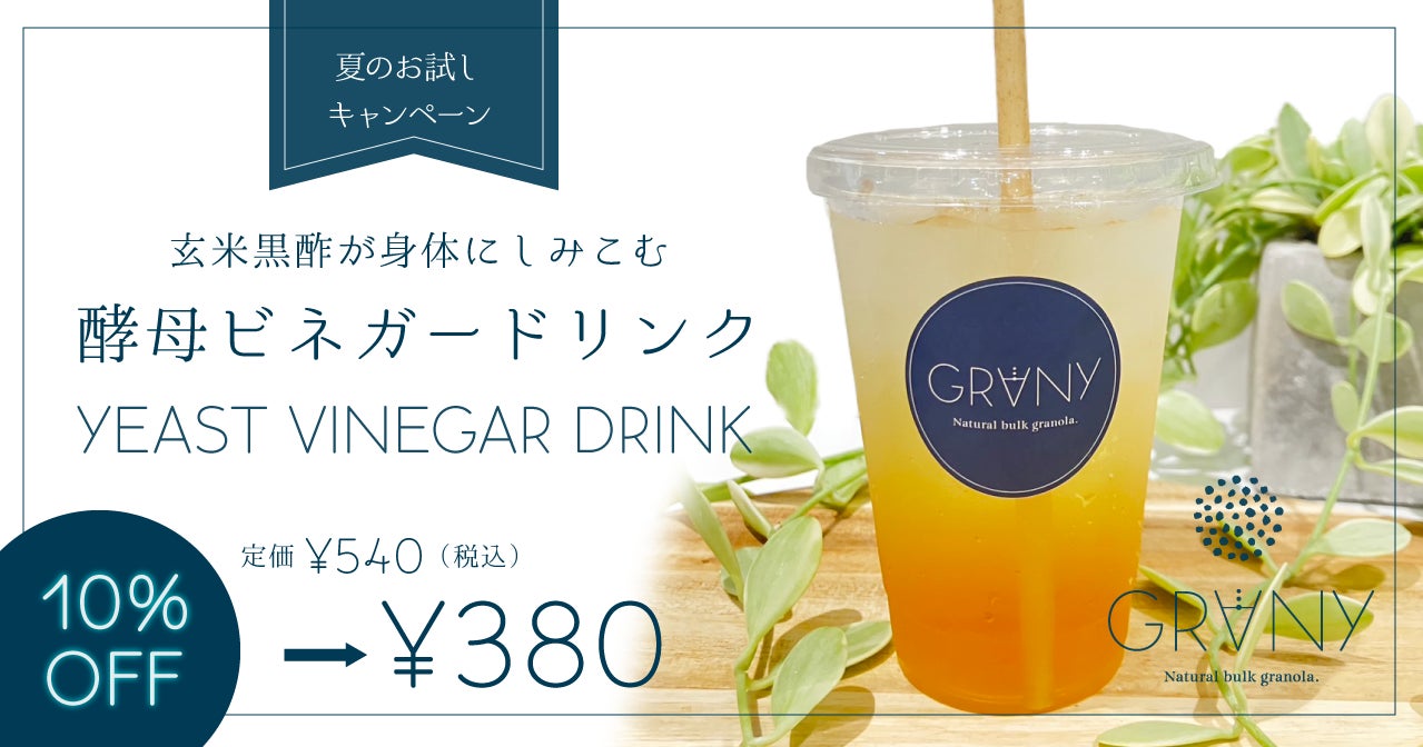 GRANYオリジナルの「酵母ビネガードリンク」を、お試し価格でご提供します。